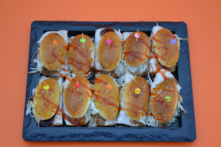 Belegd met kipfilet, tauge, pikkel, sausje en sla