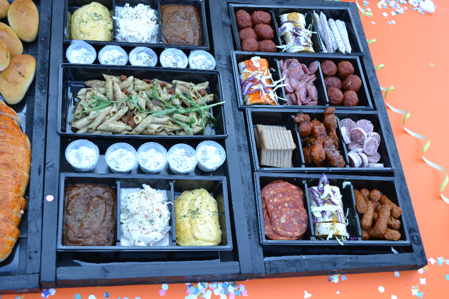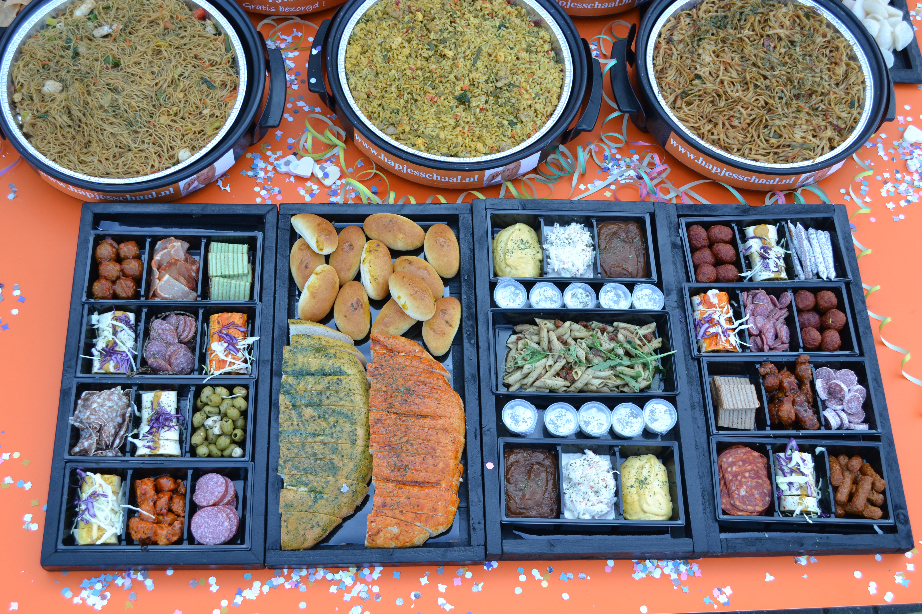 We leveren het buffet in kratten, u kunt het gemakkelijk neerzetten en aansluiten.