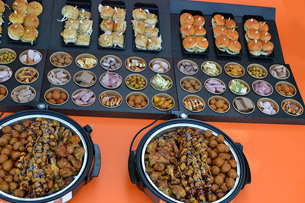 - Veel hapjes (eten op kamertemperatuur) wraps, balletjes, sate, chorizo, salami, spekkoek, verschillende worstsoorten, olijfjes, tomaatjes etc…..