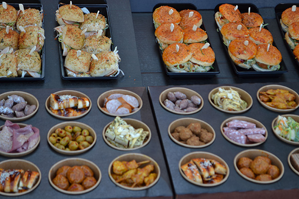 - Heel veel hapjes (eten op kamertemperatuur) wraps, balletjes, sate, chorizo, salami, verschillende worstsoorten, spekkoek, olijfjes, tomaatjes etc….