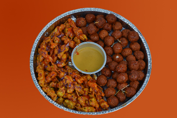 Ovenschaal gevuld met kip balletjes en kip sate!
